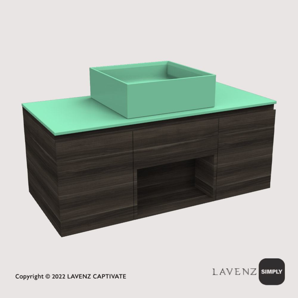 SLC10455 อ่างล้างหน้าแบบวางบนพร้อมตู้ลิ้นชักและช่องเก็บของ