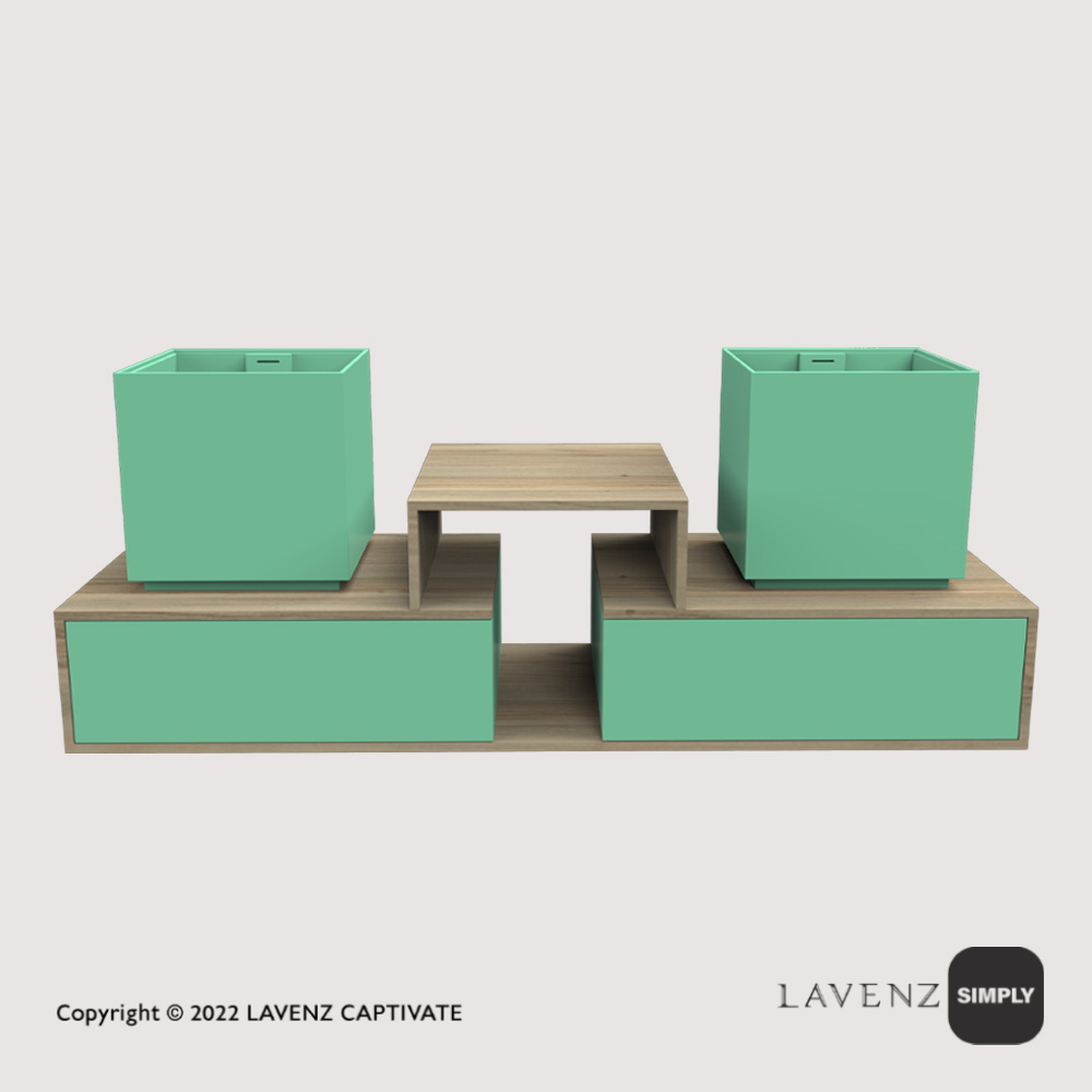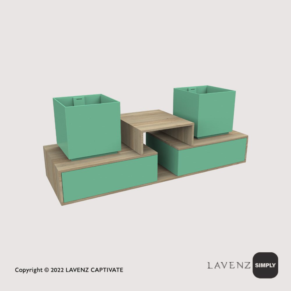 SLF15496 อ่างล้างหน้าวางบน 2 ใบ พร้อมตู้ลิ้นชักคู่และที่วางของ