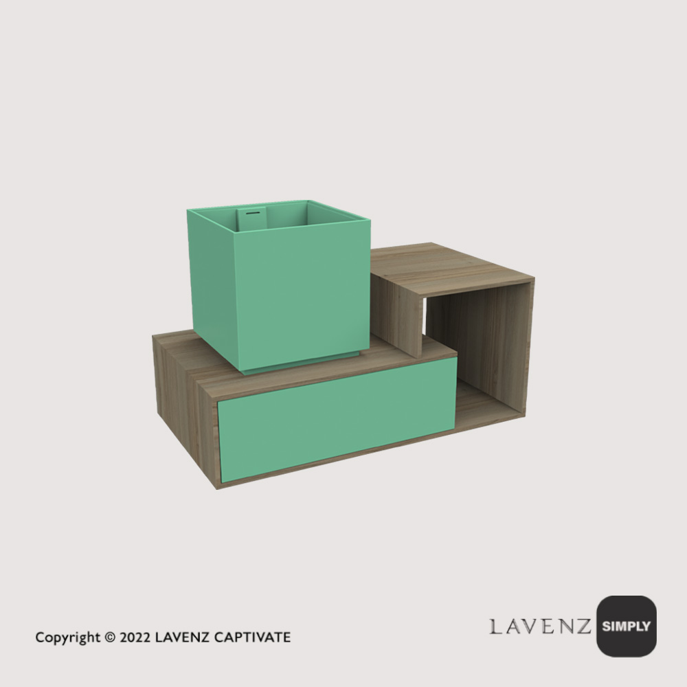 SLF09496 อ่างล้างหน้าวางบนพร้อมตู้ลิ้นชักและที่วางของ